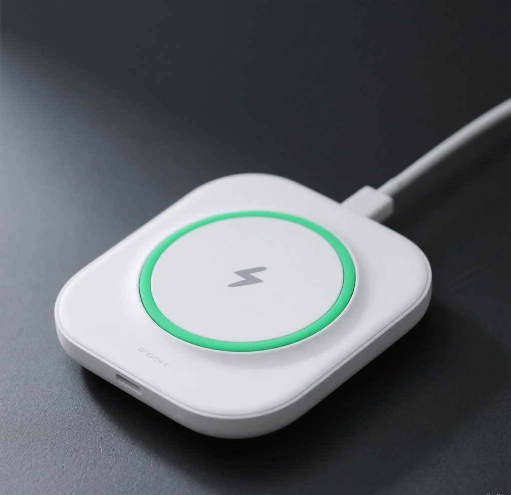 Fast wireless charging pad with 15W output, compatible with all Qi-enabled devices, featuring sleek minimalist design.