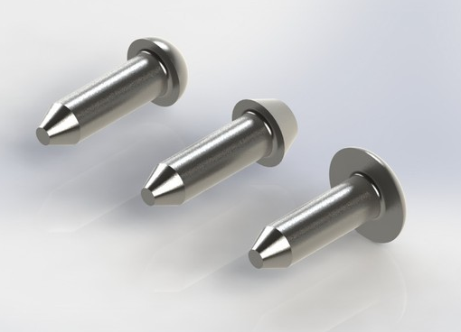 Cylindrical fasteners used to align, locate, and secure components, often functioning as pivot points or shear connectors.